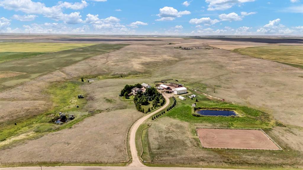 Dare to Dream? Make your dreams come true on this one-of-a-kind property! 150 acres +/- of Paradise just a 15 minute drive from the city of Medicine Hat ( all on paved road). This property has it all…AG2 Zoning; Facilities to board horses ( Barn with floor drain , Riding Arena, Shelters , 3 Waterers, Cross fenced ) , Workshop with upgraded power and ventilation system, Paint Shop, Extra Large Heated Workshop with Oversized door and a Cold Room set up (perfect for hunters), temperature controlled Greenhouse, Steel Sheds , Kennel, Dugout ( SMRID water ), Registered Dam, 40 acres +/- of dry flat land currently seeded to hay ( possibility to add irrigation rights for this ). Live your best life AND incorporate multiple revenue streams! All of this PLUS over 3000 sq ft of living space on 3 levels in a custom built walk-out 2 storey home. This well considered design speaks of quality and care. The Kitchen features Top Notch custom cabinetry, granite counter-tops , gas range , and dual wall ovens. There is a breakfast space with adjacent deck with a gas line for the BBQ, as well as a formal dining area with access to the Wrap Around Deck. Both decks offer privacy and some very nice views tucked in amongst the mature trees and landscaping. There is a conveniently located main floor laundry, a 2-piece powder room with a copper sink, the living room features a cosy wood pellet stove, and there is quality tile and warm distressed board flooring throughout the main floor. There are 2 spacious bedrooms on the upper level including the primary with walk-in closet and an exceptional ensuite with soaker tub , walk-in shower, and dual sinks. There is also a second full bathroom on this level .The lower level walk-out basement offers excellent light and leads out to an at-grade patio space overlooking the lawn. There is a large family room with a unique coffered wood ceiling, office nook, third bedroom, full bathroom, cold storage room, gas fireplace, and the utility room. Other features include an attached heated double garage 28 x 30 with oversized door, and RV pad with power hook-up. This is a home and location that must be seen to be truly appreciated! Call your REALTOR® for a private viewing , then consider purchasing the lifestyle you have always dreamed of. Seller will consider trade towards purchase on a smaller property.