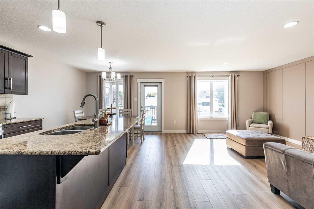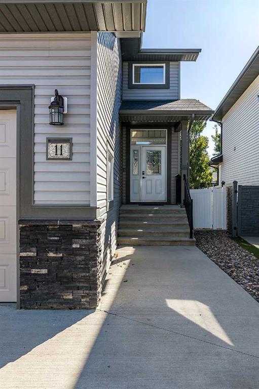Welcome to one of the city's most family-friendly neighborhoods , with a classic two-storey layout and a fully developed basement. Welcome to 11 Sterling Link Southeast , a 1,719 square foot beauty close to parks, schools and walking paths on the south end of town. The home has great curb appeal with an extended front drive and a double attached garage in the front. The front foyer opens up to a great layout, the main floor is flooded with natural light with a fully equipped kitchen. Stainless steel appliances , granite countertops and and a corner pantry complete the kitchen that opens into the living space and access to the covered deck. The upper floor has 3 bedrooms including a great primary suite with ensuite and walk-in closet. The basement is fully developed with room for another bedroom if you need, but is currently a great spot for family time or to lay back and watch a movie or the game. The yard is a great size for the area with a shed included for extra storage. Come see if this home could be the one for you , contact your preferred agent today.