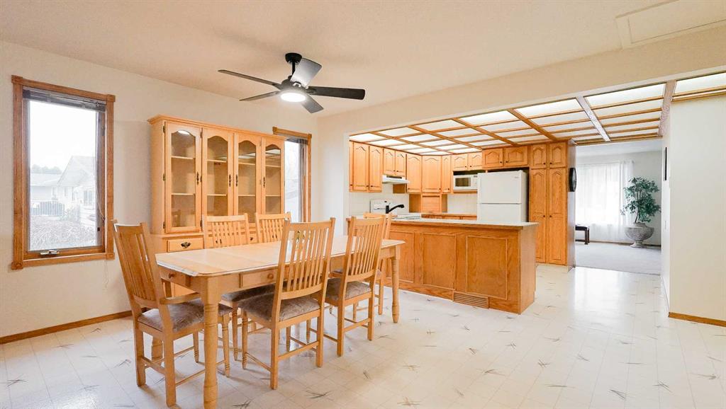 Welcome home to this beautiful and inviting 5-bedroom bi-level, ideally located in a quiet, family-oriented neighborhood close to schools, shopping, and parks — the perfect blend of comfort and convenience. The main floor showcases a large, functional kitchen with abundant cabinetry and generous counter space, ideal for everyday cooking or entertaining guests. The expansive dining area flows seamlessly into the back great room, featuring a stunning floor-to-ceiling stone wood burning fireplace — a true showpiece and cozy gathering spot. The front living room boasts large picture windows, filling the home with natural light. Two spacious bedrooms and an updated 4-piece main bathroom complete the upper level. Downstairs, the fully finished basement adds exceptional living space with three additional bedrooms, a modern updated 3-piece bathroom, and a comfortable family room perfect for movie nights or kids’ playtime. Step outside to enjoy the fully fenced yard, featuring space to add a garage, a covered deck, two storage sheds, and a concrete patio with a basketball net. Raised garden boxes provide a wonderful opportunity for those who love to garden, adding charm and functionality to the outdoor space. There’s plenty of room here for outdoor activities, entertaining, and relaxation. This well-maintained home offers flexibility, functionality, and room for everyone. Don’t miss your chance to make it yours!