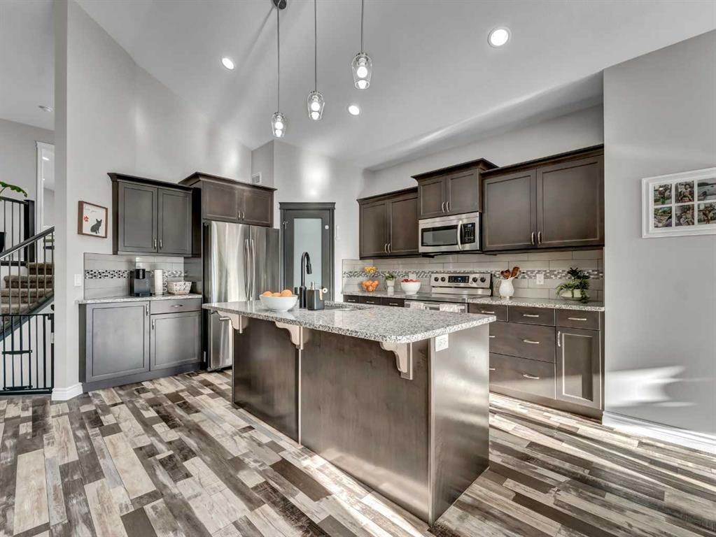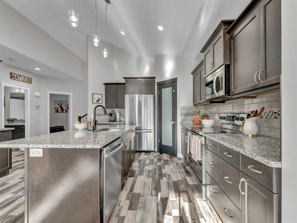559 Vista Drive SE – Spacious Modified Bi-Level on a Prime Corner Lot Welcome to 559 Vista Drive SE, a beautifully updated modified bi-level perfectly situated on a corner lot directly across from a large park. This fantastic family-friendly location pairs seamlessly with a thoughtfully designed layout and numerous modern upgrades. Step inside to a generous entryway featuring a built-in bench and convenient access to the double attached garage. The main floor offers a bright, open-concept design with vaulted ceilings and large windows that flood the space with natural light. The inviting living room is the perfect gathering space, highlighted by a stylish feature electric fireplace that adds warmth and ambiance. The stunning kitchen is the heart of the home, showcasing Beautiful cabinetry, quartz countertops, tile backsplash, a large centre eat-up island, and a corner pantry—ideal for both everyday living and entertaining. The spacious dining area easily accommodates a large table for family gatherings and provides access to the covered back deck. Partially enclosed for added privacy, this outdoor space includes a natural gas BBQ hookup and is perfect for relaxing and enjoying summer evenings. The main floor is completed by two good-sized bedrooms and a large 4-piece bathroom. Just a few steps up, you’ll find the impressive primary retreat offering ample space for all your furniture, dual walk-in closets, and a beautiful 5-piece ensuite featuring dual sinks, a separate walk-in shower, and a luxurious soaker tub. The fully finished lower level adds even more living space with a large family room, two additional bedrooms, a full 4-piece bathroom, and laundry. Outside, the fully fenced and landscaped backyard offers a low-maintenance design with half lawn and half concrete—ideal for both play and entertaining. Additional highlights include new vinyl plank flooring and basement carpet, new cabinetry, fresh basement paint, new toilets, two-zone heating, hot water on demand, and a rare 30-foot-deep garage. This move-in-ready home offers space, style, and an unbeatable location—directly across from the park and ready for its next owners to enjoy.