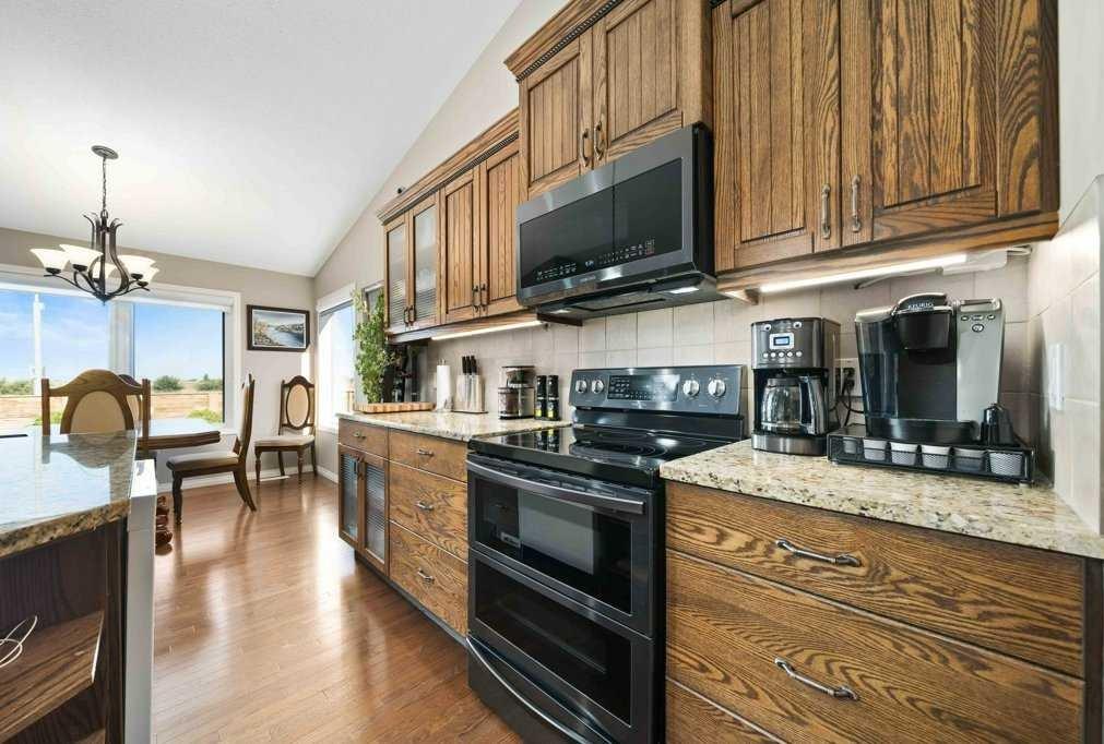 This beautiful bungalow in a private cul-de-sac in Southridge may be just what you’ve been waiting for. With over 1,330 sq.ft., heated triple garage, 4 bedrooms, 3 baths, fabulous landscaping and bright, open floor plan, this is a great place to call home. The property sits on a large lot with a view to the west where you can watch the sun set over the wide open prairie. A wide entryway welcomes you into an immaculate home that showcases rich hardwood floors, vaulted ceilings, fireplace and the kitchen with rich ash cabinets, granite countertops, large island and glass door accents. The large master bedroom has an ensuite w/jet bath and his & hers closets. The laundry room is convenient on the main floor near the garage. Downstairs has two good-size bedrooms, 3-piece bath with shower, huge family room with fireplace and a unique built-in cabinet. Underground sprinklers front and back plus plenty of sunshine ensure lush foliage and a bountiful garden. The lower patio will become a favorite spot for relaxation where you’ll appreciate the soothing sounds of the pond waterfall. Zoned heating keeps utility costs low (avg. $325/mo). With close proximity to S. Boundary Rd and Southridge Dr. you have quick access to the airport, Hwy 3 and popular shopping areas. Recent updates include new earthy colours, black stainless fridge, stove and microwave, custom curbing around shrubs and pond, stamped concrete patio and walkway (with compass built-in), water softener and hot water tank in ‘23.
