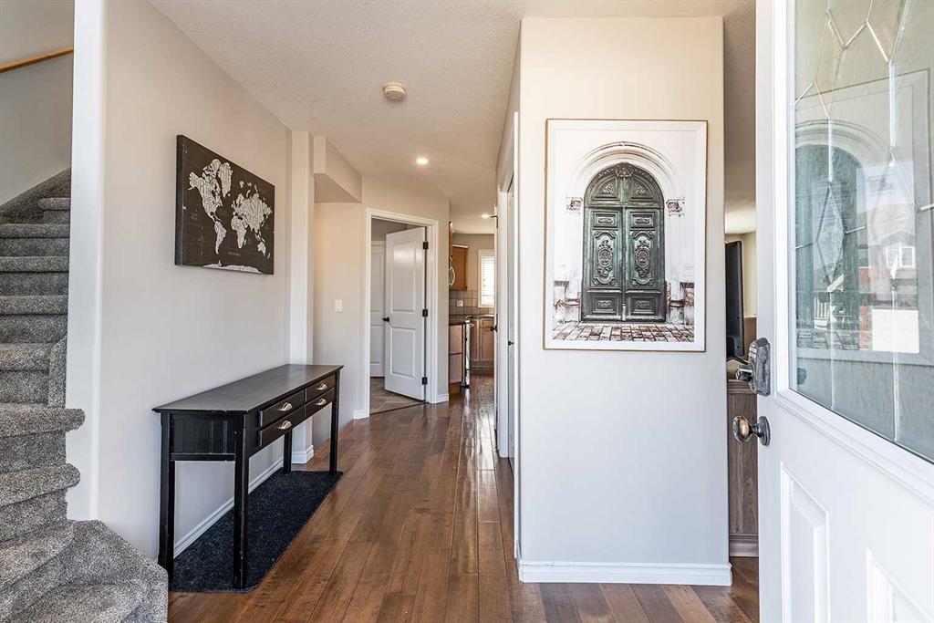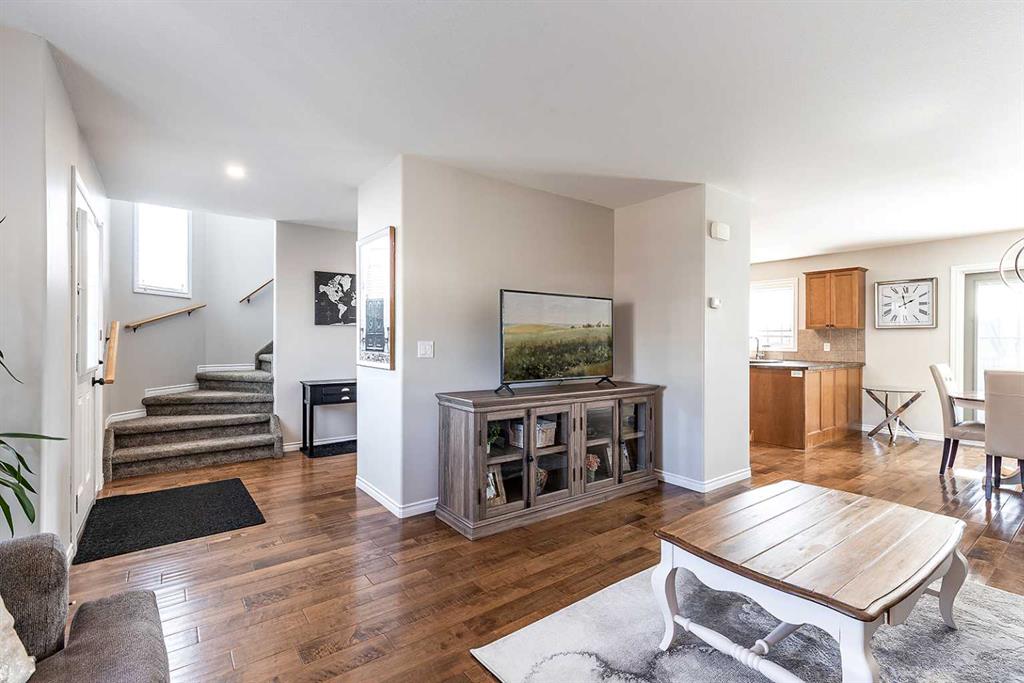 Welcome to Ranchlands — where this move-in ready home checks every box. Hardwood floors, flooded with natural light from oversized main floor windows, set the tone the moment you walk in. The kitchen is built for real life with plenty of maple cabinetry, generous counter space, and updated appliances (2021). A convenient powder room with in-suite laundry (washer/dryer 2021) and direct backyard access round out a main floor that just works. Upstairs, three well-sized bedrooms offer comfort and flexibility. The primary bedroom fits a king with room to spare. The main bath is a standout with a jetted soaker tub, separate shower, and more space than you'd expect. The lower level is where this home truly steps ahead: a fully finished, permitted basement with a 3-piece bathroom ready for a family room, home office, or gym. Out back, a private deck with gazebo (2021) overlooks a fully sodded yard (2022) with enough room for a future garage or RV pad, a rare find in an established neighbourhood. Additional updates include a new hot water tank (2022). This one is priced to move and built to impress.
